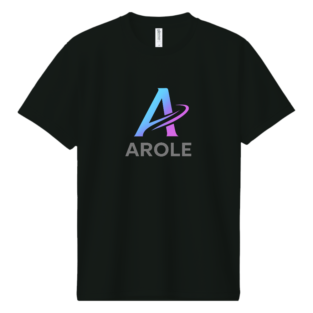 AROLEブランドの光グラデーションAロゴを載せたシンプルな黒Tシャツです。